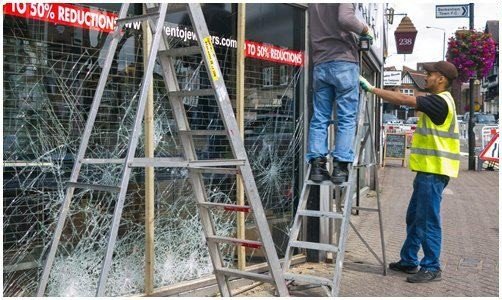 Broken glass removal and replacement. Suitable for homes, shops, and offices